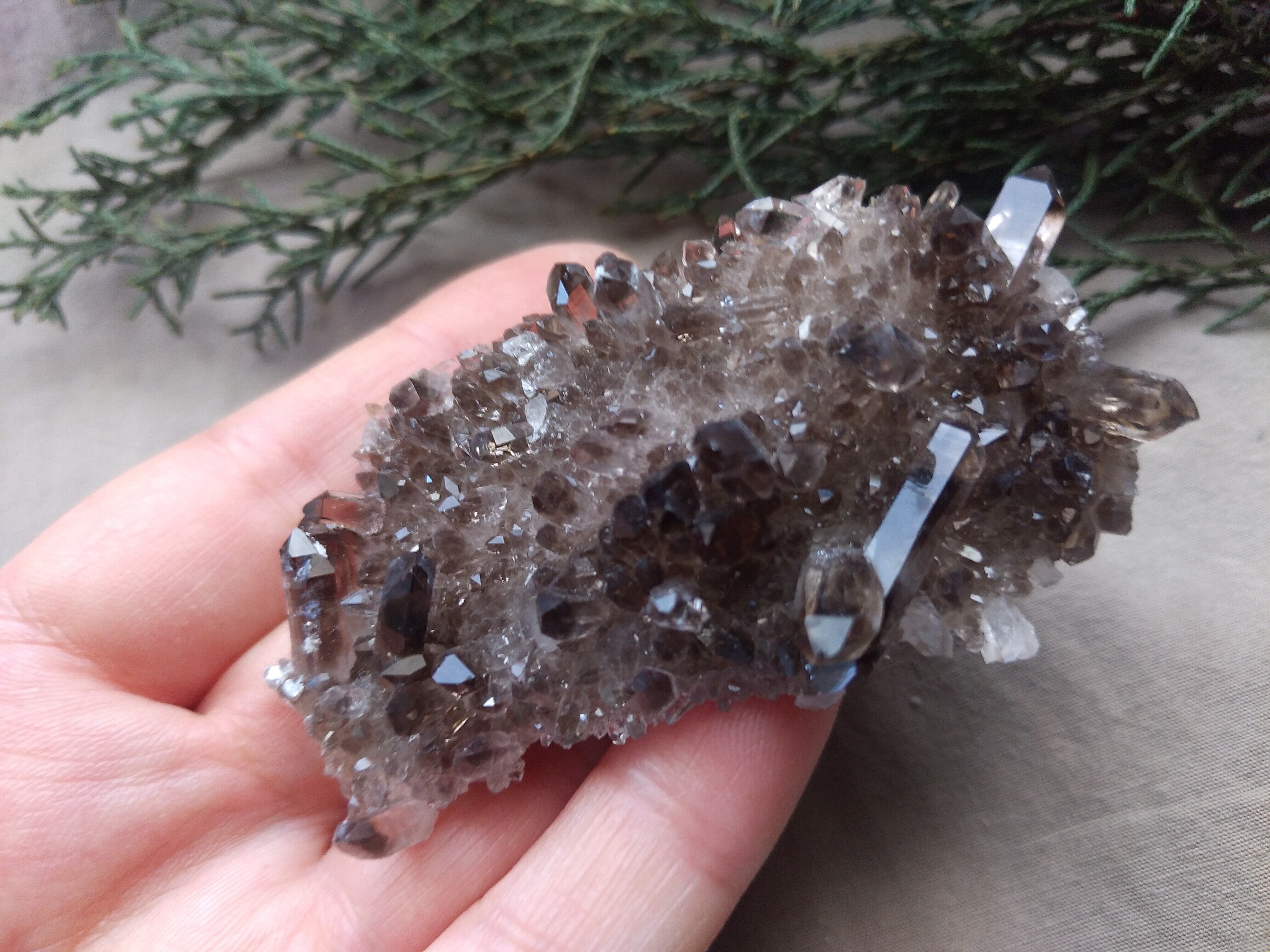 漆黒の結晶が美しい、高品質のモリオンクラスターです。